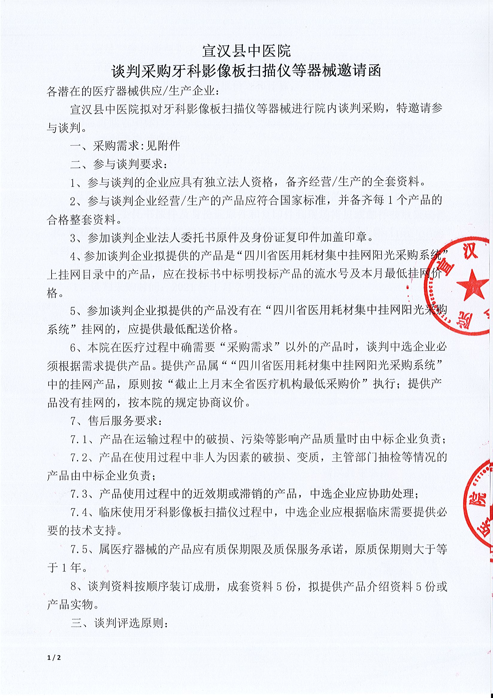 谈判采购牙科影像板扫描仪等器械邀请函