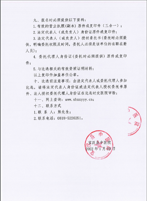 宣汉县中医院后勤物资采购项目定点单位比选公告
