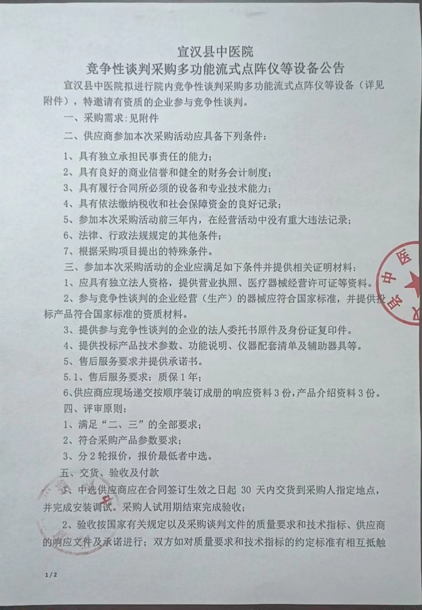 竞争性谈判采购多功能流式点阵仪等设备公告