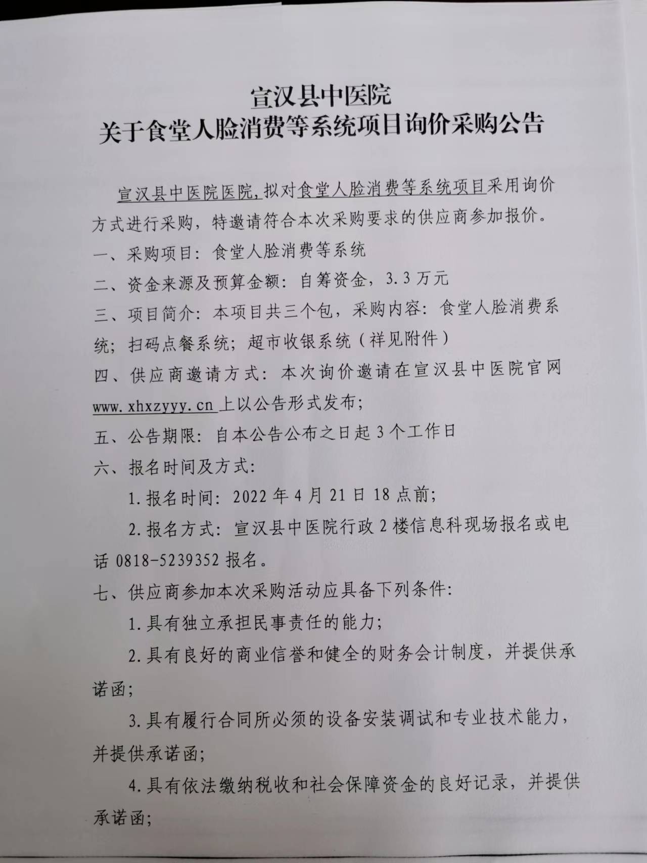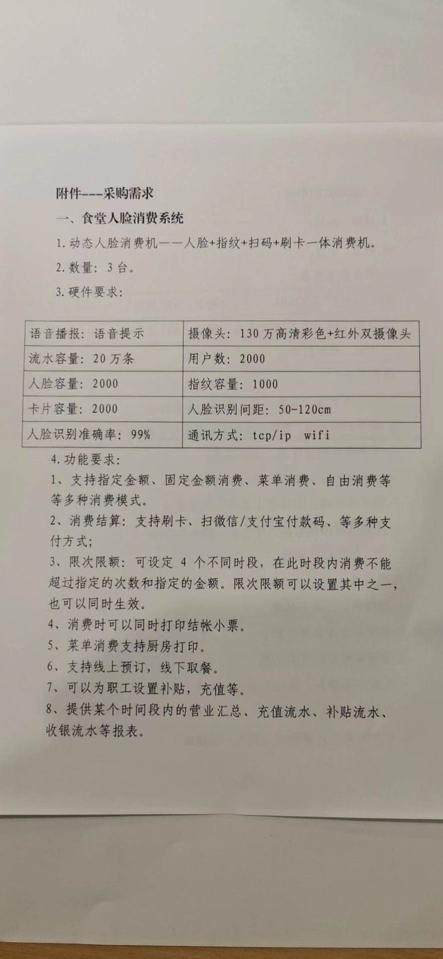 关于食堂人脸消费等系统项目询价采购公告
