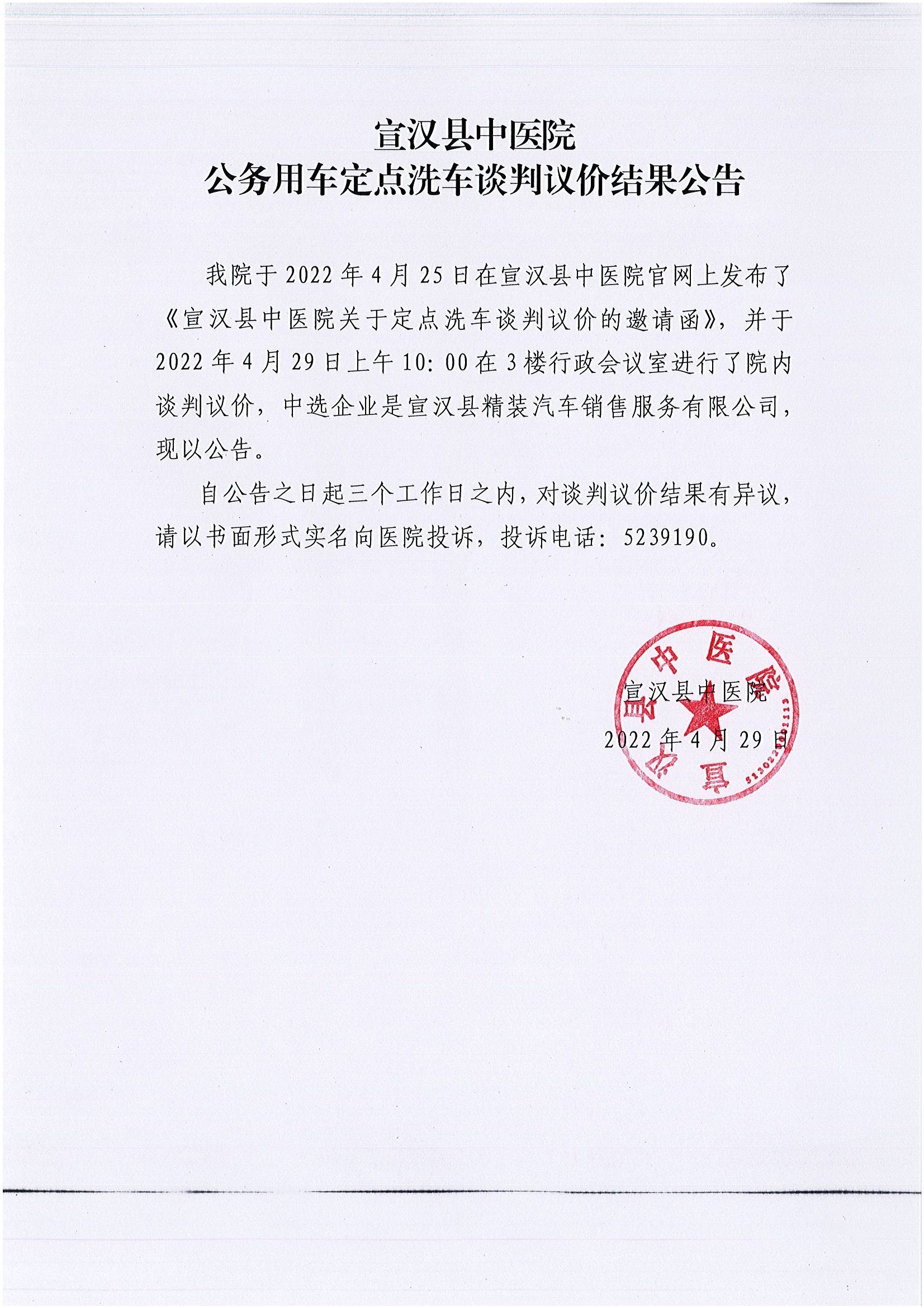 公务用车定点洗车谈判议价结果公告