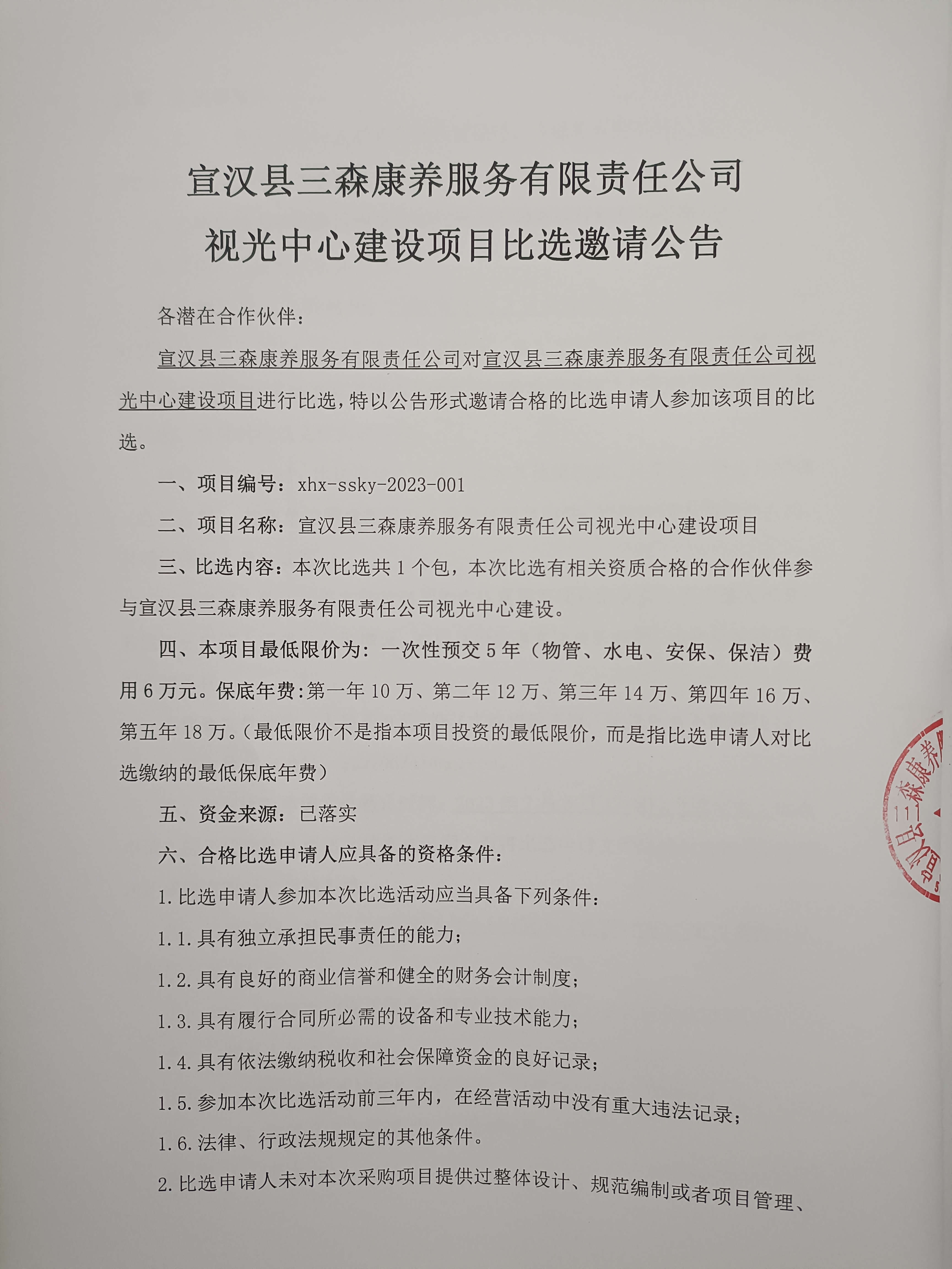 宣汉县三森康养服务有限责任公司视光中心建设项目比选邀请公告
